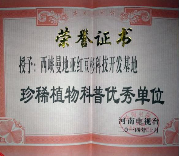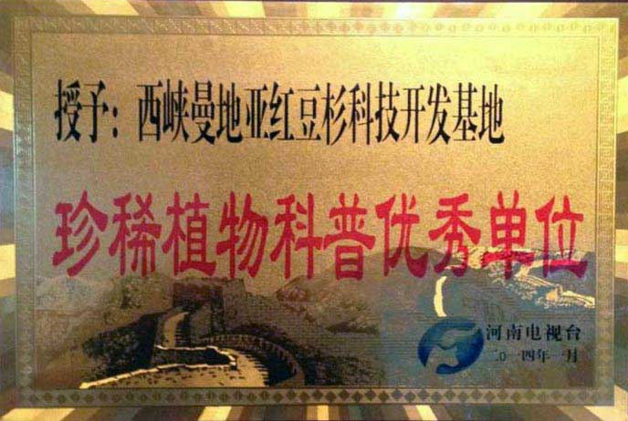河南西峽曼地亞紅豆杉科技開(kāi)發(fā)基地成立于1997年。致力于世界珍稀藥用植物的研究、開(kāi)發(fā)及推廣。公司在中原率先引種原產(chǎn)加拿大的珍稀抗癌藥用植物曼地亞紅豆杉5萬(wàn)棵及國(guó)內(nèi)品種東北、云南、南方、西藏、中國(guó)紅豆杉近萬(wàn)株,總結(jié),引進(jìn)了山陽(yáng)坡、丘陵、灘渝及全國(guó)各地的種植管理技術(shù);實(shí)現(xiàn)了規(guī);、規(guī);N苗生產(chǎn)……